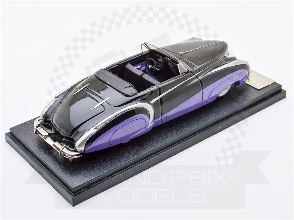 The coachwork of Jaques Saoutchik was often dramatic but this series of Cadillacs must go down as among the most flambouyant designs that he ever laid down and this provides a challenge for model makers. We have photos of two of the cars in the colour schemes depicted here, both at Pebble Beach in 2006 and assume that the white and mauve car is a third chassis. The colours on the black and mauve hand built look very good though the lighter colour on the violet and mauve one is a little too rich, The finish of the hand builts is generally good but accuracy less so, with many lines not being right, particularly in the area behind the doors. Looking closely at the kit parts, the builts and the photos of the real cars, this is an error of painting rather than of modelling and can be rectified during building should you take the kit option, though if you choose the version with the basketwork effect side panels the decals provided aren't quite the right shape but they have been deliberately printed oversize to allow for some trimming and adjustment. Certainly a brave effort by ABC and striking models in their own right, but they haven't quite hit the target.