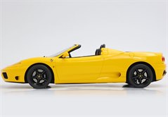 With the 360 Modena Spider, Ferrari created its 20th road convertible car, presented at the 2000 Geneva Motor Show.Despite the exposed position of the rear V8 engine, Ferrari engineers managed to create a fully retractable automatic hood. The aerodynamic efficiency of the 360 Spider was achieved thanks to the separate double openings of the radiators that allowed the passage of air under the car and up to the extractors located under the tail.Maximum safety guaranteed to the occupants thanks to the two roll bars that strengthen the two headrests. Among the innovations also the use of aluminum as a structural material for the chassis.
