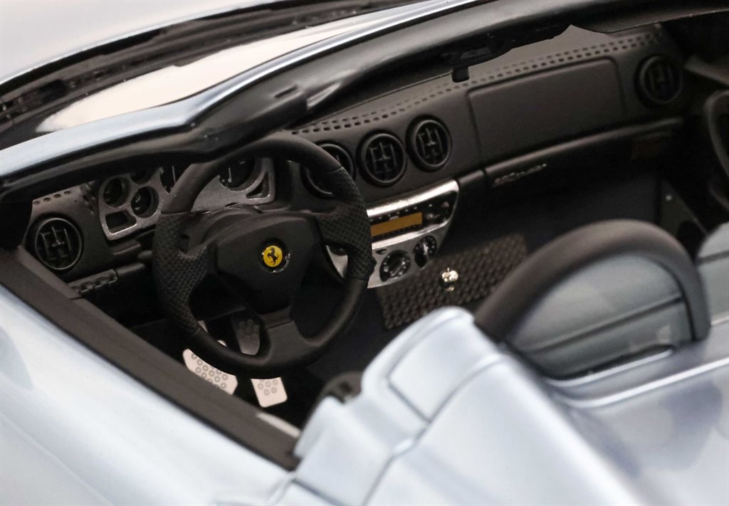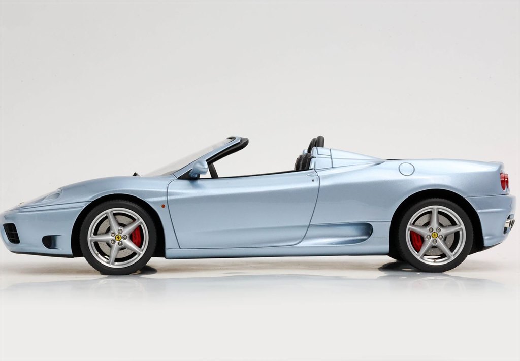 With the 360 Modena Spider, Ferrari created its 20th road convertible car, presented at the 2000 Geneva Motor Show.Despite the exposed position of the rear V8 engine, Ferrari engineers managed to create a fully retractable automatic hood. The aerodynamic efficiency of the 360 Spider was achieved thanks to the separate double openings of the radiators that allowed the passage of air under the car and up to the extractors located under the tail.Maximum safety guaranteed to the occupants thanks to the two roll bars that strengthen the two headrests. Among the innovations also the use of aluminum as a structural material for the chassis.