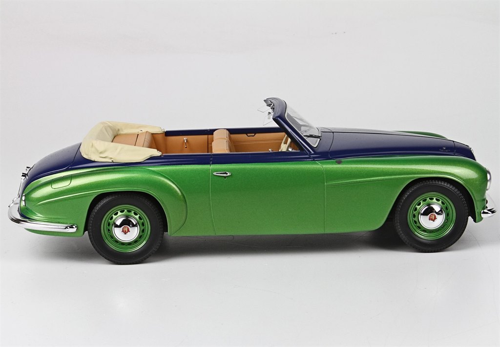 Named after the famous Italian concours event which was won by a Touring-bodied 6C2500 in 1949, the Villa D’Este was the last truly coachbuilt Alfa and one of the rarest, with only thirty-six examples built of which five were cabriolets. The elegant lines are well captured here and the subdued deep red colour suits the car very well. Panel engraving is neat beneath the paint and the external trim is well fitted, but it is the interior which really impresses with delicate window winder handles and clear wind deflectors on etched brackets above the windscreen.