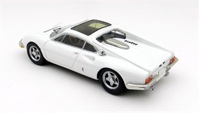 Based on the chassis of a 365P2 endurance racer, just two examples of this novel three-seat mid-engined GT were built. The car seen here was the first, delivered to Luigi Chinetti of NART early in 1966, the second example coming a few months later for Fiat boss Gianni Agnelli. The Pininfarina styling is very similar to the Dino, launched the same year, but the wide body to accommodate the three-abreast seating and a clear roof panel help the car stand out. Some of the detail painting is a little untidy on our built sample, but the overall shape looks pretty good and the main paint finish is too.