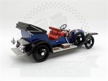 These two typically well finished miniatures from Carbone depict the same car with roof down and raised. The distinctive machine was built for the Maharaja of Mysore, at the time claimed to be the second richest person in the world and one who was renowned for ordering his cars in multiples of seven! The fine detailing is very well done with extremely delicate wire wheels, realistic looking seating and plenty of plated parts including a snake’s neck horn. Photographs of the restored car in recent years showed it with a very colourful umbrella on the rear, which was to shade the servants as they rode on platform right on the tail. This was intended by Carbone to be included with the roof up version, but was so delicate that it sadly had to be abandoned, although there is a mounting there.