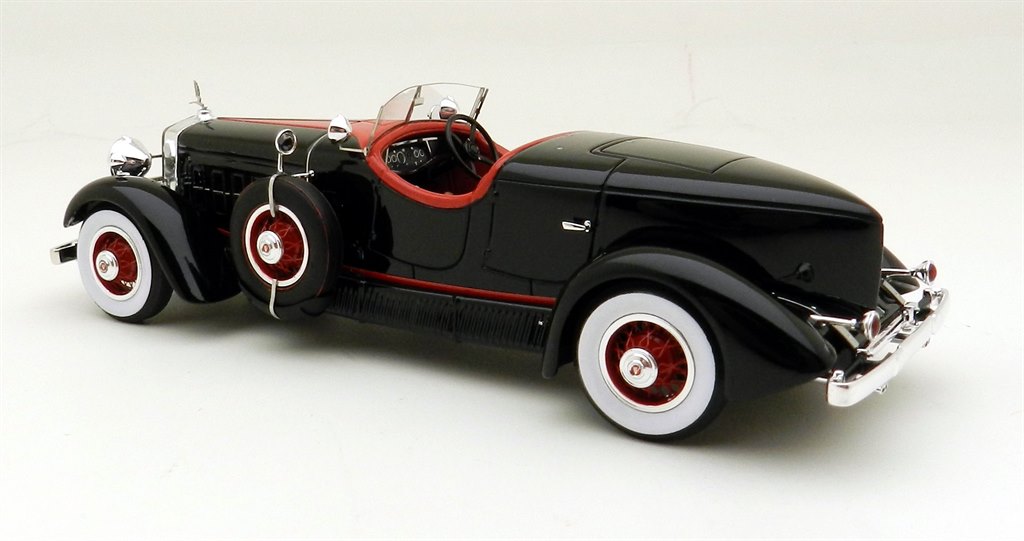 Black/Red Also available CAR4399 Cream Blue Pinin Farina established his own coachbuilding firm in 1930 and his fame quickly spread. This unique Cadillac was commissioned by the Maharajah of Orcha and was fitted with multiple gun compartments for the purpose of tiger hunting. The original colours were cream and pale blue and the car has been returned to this specification; but it is modelled as it arrived in America in the early 1990s finished in black and red. With a two-seat body on such a long chassis it makes for an imposing machine and the shape looks very good. The two-tone paint finish is excellent and there is some fine detailing including a very delicate etched windscreen. A rare European body on a V16 chassis and very nicely done.