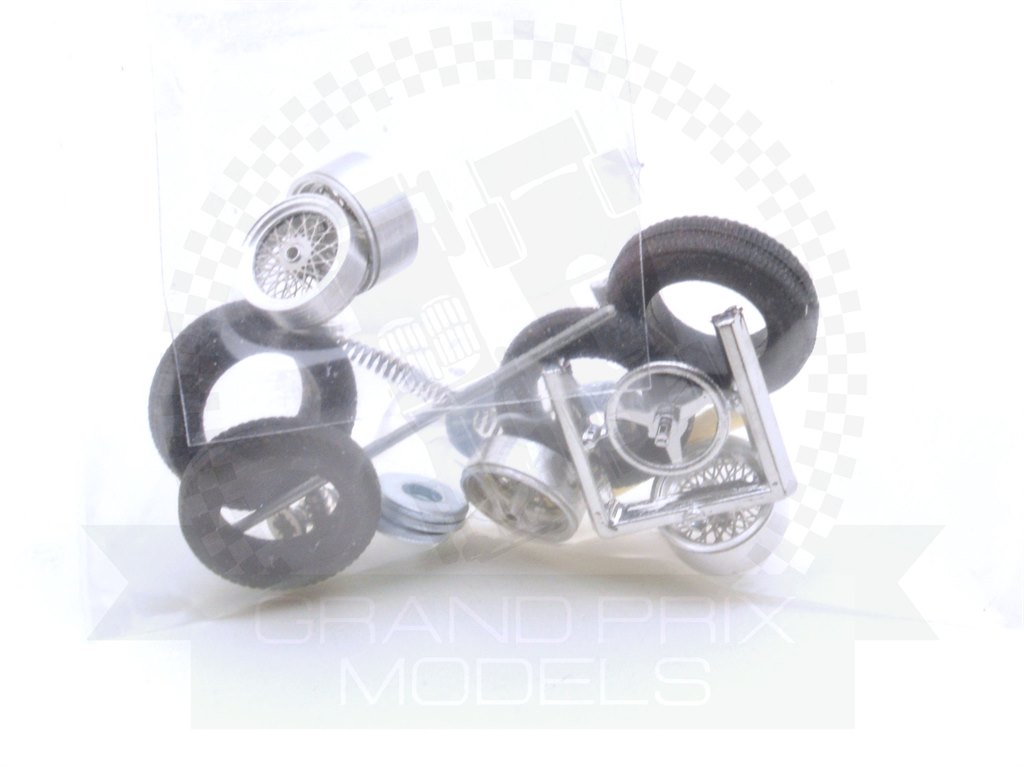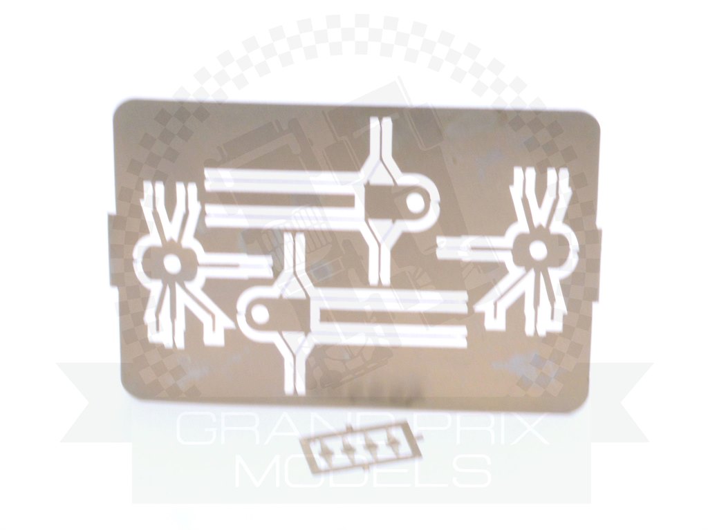 In terms of basic body shape, Jade have done a reasonable job with Aston Martin’s second F1 racer and the kit is in their typical style with a cleanly cast resin body, decent wire wheels and simple etch for the suspension. It is on the suspension that things fall down a little this time as the hand built models demonstrate a significant discrepancy between the track width front and rear. It is the front that is too narrow and fixing this for kit builders could be fiddly unless the wheels can be spaced slightly as the etched suspension wishbones looks to be on the short side. In that front suspension we see fine coil springs and yet the DBR5 ran with torsion bar suspension and so had simple telescopic dampers on the front. Interestingly on some of the photos that accompany the kit the cars are seen pre-race with coil springs in place but on track without them. Helper springs for transport perhaps? The choice is yours as to whether or not to include them in your build.
