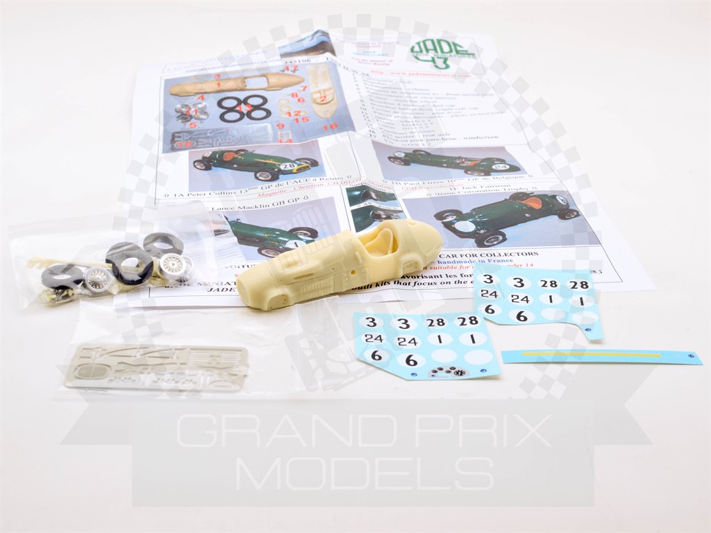 This is the first of three kits that Jade are releasing of the HWM which between them offer a significant number of options. There are five to choose from here, four of which are illustrated on the instructions as built models and all among the real car photos. The kit parts are relatively simple with cleanly cast resin for the body, chassis/cockpit, brake drums, steering wheel and exhaust. The wire wheels are high quality and there is etch for suspension and other smaller details.