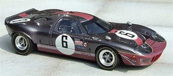 The only Mirage to remain in its original form, M10001 was only used by the factory at Kyalami in 1968, where it was bought post-race by Malcolm Guthrie who repainted it in his very smart dark metallic grey and burgundy colours. That livery is beautifully replicated on these hand builts, a deep lacquer covering paint and decals. This isn’t strictly authentic but does make for a very good looking model. Where necessary decals have been neatly cut into panel lines and on the Kyalami version we see the headlamps taped over. Very attractive models of a rarely seen subject.