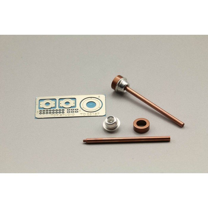 McLaren MP4-6 Driveshafts 1:12Made to fit Tamiya kit TAM89721With etched and machined parts to create the inboard CV joint into which a brass axle slots, these parts are designed so that there will be some movement available. Cleverly thought out.
