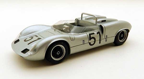 Elva typically sold their competition cars as rolling chassis but with the Mk7 a deal had been done with Porsche to supply the English car maker with engines and nineteen of the twenty seven chassis built has these power units. The combination was very successful on both sides of the Atlantic and here we see the car run by Porsche for Herbert Muller in the European Hillclimb Championship, a series he finished second overall. The kit parts are fairly simple with the well-proportioned and very crisply moulded body pre-painted in a fine silver. Some feed tags will need trimming from the smaller parts, but nothing tricky and the finished model shows that with careful assembly you will have an attractive and pretty accurate miniature.