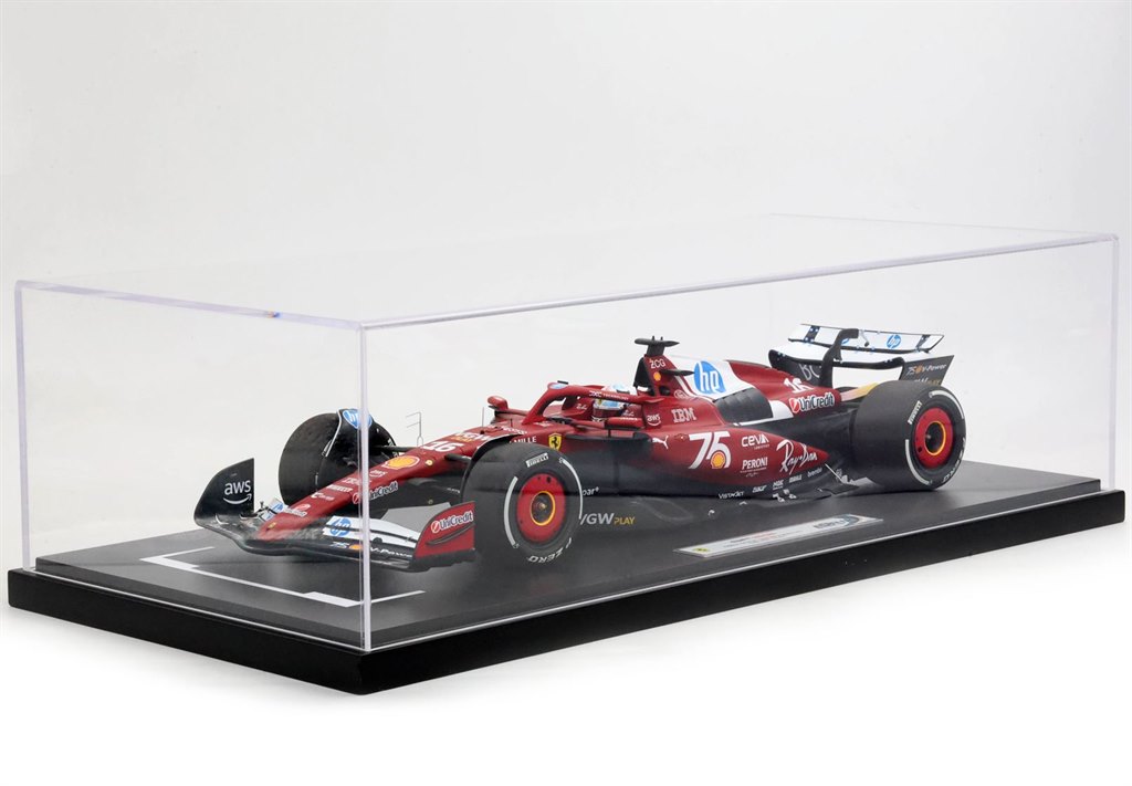 Scuderia Ferrari had a good race in Monaco Grand Prix 2025, with a mix of joy and a pinch of disappointment for the missed second consecutive home win of Charles Leclerc. The monegasque took an excellent second place. BBR launch its first 1/12 scael F1 model made to celebrate the podium of SF25 of Charles Leclerc in the Monaco GP, his home GP. Lewis Hamilton starting seventh, he used an effective strategy and a constant pace to climb the standings. Despite the penalty imposed during qualifying and the difficulty of overtaking in the street tack of Monaco, he managed to take the fifth place, bringing important points to the team.The model includes base and a protective plexiglass display case.