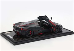Personal car, ordered by one of the greatest former Ferrari drivers in recent Formula 1 history. Fernando Alonso tailor made as requested by the top driver.Matte black color with red stripes.Ferrari LaFerrari, presented in 2013, is an icon of automotive engineering and design, a car that is a perfect combination of aesthetics, aerodinamic efficiency. The front, sculpted by the wind, with its sharp nose and generous air intakes, embodies the power and determination of the car. The gull-wing doors underline the elegance and exclusivity of the LaFerrari. The rear, with its mobile spoiler and imposing diffuser, guarantees a high aerodynamic load, essential for maintaining stability at high speeds.The LaFerrari is a car that embodies the passion and excellence of the Ferrari brand, a work of art in motion that has left an indelible mark on the history of motoring.