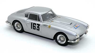 The three litre Ferraris dominated the 1959 Tour de France, this one driven by Gendebien and Bianchi leading home a 1-2-3 finish. The simple model checks out well for decal placement and small details but the race photos show it to have a very dull finish, quite possibly bare aluminium, to the bodywork whereas the model is smartly painted in gloss silver. Otherwise pretty good.