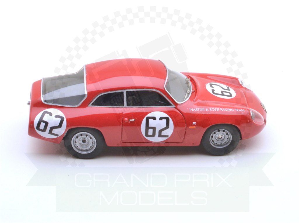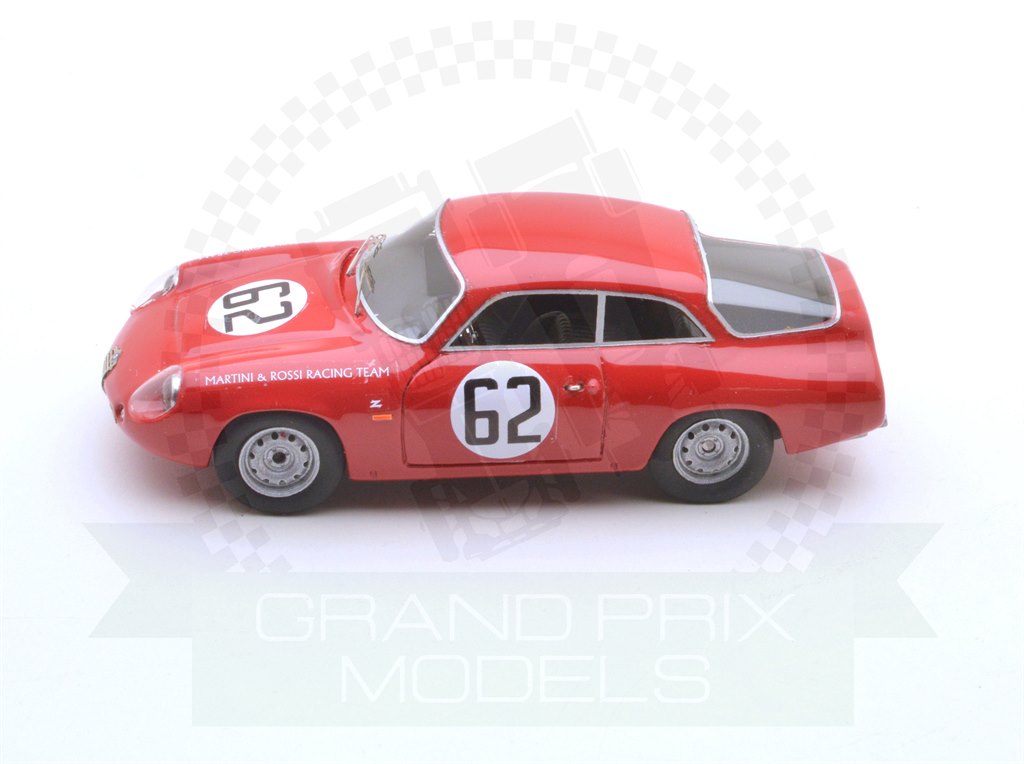 Common lore regarding the first car to race in Martini colours is that it was a Porsche at Hockenheim in 1968. Photos and entry lists from Sebring in 1962 rather put the lie to that, a pair of Alfa Romeo SZs appeared wearing the Martini & Rossi Racing Team legend along the front wings. Appropriately car #61, which was classified twenty-fourth, was painted ‘bianco’, while #62, which was the last classified runner in thirty-seventh, was ‘rosso’. The white car was actually run by Scuderia Ambrosiana while the red car was entered under the banner of Martini & Rossi, New York. Both models are smartly finished, our white painted sample being slightly better, and the small detail differences are well observed. Only fifty example of each model are being made.