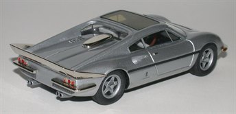 Gianni Agnelli’s personal car was the second of the three-seat supercars built by Ferrari on 365P2 endurance racer chassis, the first having been for Luigi Chinetti (BEE151B). The car is modelled here in its original silver (it has since been restored in red) and the paintwork on the model is evenly applied. The large rear spoiler is a plated metal part, as are the bumpers, fuel fillers and engine air intake and these are neatly fitted. The windows have very fine printed frames on them but the fit here is a little uneven on our sample.
