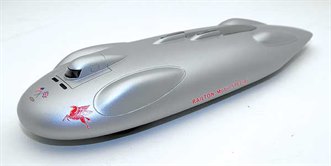 With a car built a decade previously though much refined for post war attempts, John Cobb arrived at Bonneville in 1947 as the holder of the Land Speed Record but with a new target in mind, to break the 400mph barrier. He did so on the return run with a speed of 403mph but a slower first run meant that the aggregate time, and therefore the record, stood at 394.2 mph. Bizarre’s model captures the long, low lines of this huge machine very well and the finish is a satin silver to replicate the bare aluminium of the real machine. Decals are clearly printed and carefully placed, all adding up to make an excellent addition to any LSR collection.