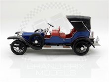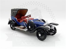 These two typically well finished miniatures from Carbone depict the same car with roof down and raised. The distinctive machine was built for the Maharaja of Mysore, at the time claimed to be the second richest person in the world and one who was renowned for ordering his cars in multiples of seven! The fine detailing is very well done with extremely delicate wire wheels, realistic looking seating and plenty of plated parts including a snake’s neck horn. Photographs of the restored car in recent years showed it with a very colourful umbrella on the rear, which was to shade the servants as they rode on platform right on the tail. This was intended by Carbone to be included with the roof up version, but was so delicate that it sadly had to be abandoned, although there is a mounting there.