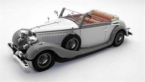 Originally delivered to a Parisien dealer as a bare chassis in April 1935, this Type 57 was fitted with an elegant and expensive Van Vooren body soon afterwards. Older photos of the car show dark colouring but the car appeared at auction a couple of years ago and it is in the cream and grey/brown current form that we see it modelled. The body shape is well replicated and is very subtle compared with some of the better known Van Vooren designs. The paintwork and detailing on the model is excellent and overall it looks like the car.