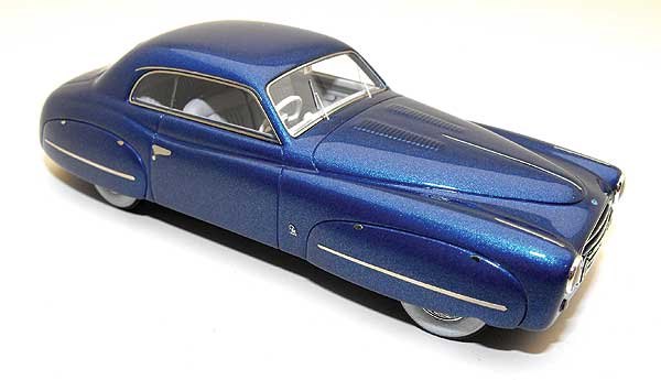 The rear end of the bodywork on this Ghia-Aigle Delahaye is very similar to that on the 1949 cars (CARNIC004 & LUX015) but the front end treatment is rather more modern, losing the pre-war carry over grille design. This makes the already long nose look even bigger and the overall effect is more hovercraft than car. It certainly stands out and the overall finish of the model is excellent with attractive metallic blue paint, contrasting light grey interior and carefully applied trim. Most importantly, it looks like the real car.