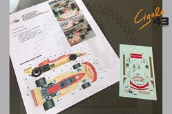 Excellent decal sets printed in Italy for use on 1:43 F1 kits (usually Tameo/SilverLine) or diecasts. Drawn in America.