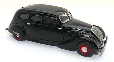 Peugeot’s aerodynamic 402 was available with a variety of body styles and this model depicts a car built on the largest standard wheelbase. Usually this would be an eight seat car but in Commerciale form seen here there are no rear seats, just a flat load floor accessed either by the side doors or a two piece tailgate. The kit is well cast and the external shape of the car looks very good. The build will be simple with just a handful of resin parts and a few fine etched details to finish things off. These include the front grille which needs to be shaped to fit, though there is a distinct mounting ridge to fit it into which simplifies matters. The hand built model is neatly assembled but the black paint on ours is quite dull in finish.
