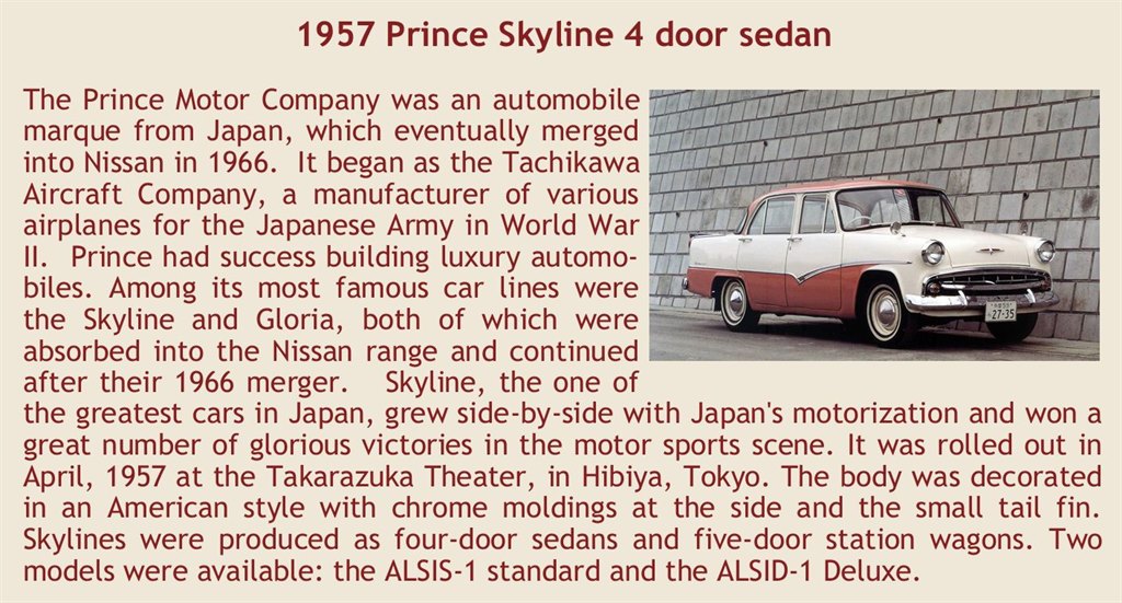 Description: Prince Skyline 4-Door 1957 Orange/White