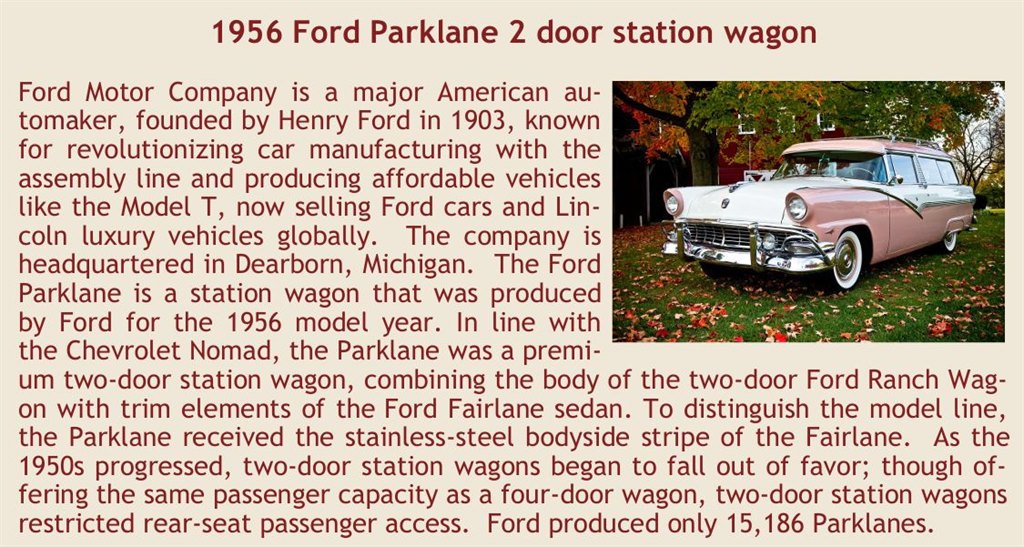 Description: Ford Parklane 2-Door Station Wagon 1956 Pink/White
