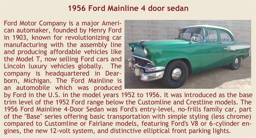 Description: Ford Mainline 4-Door 1956 Green/White