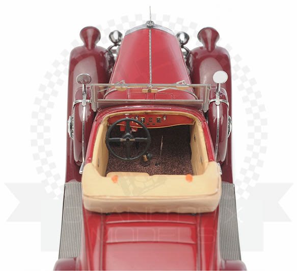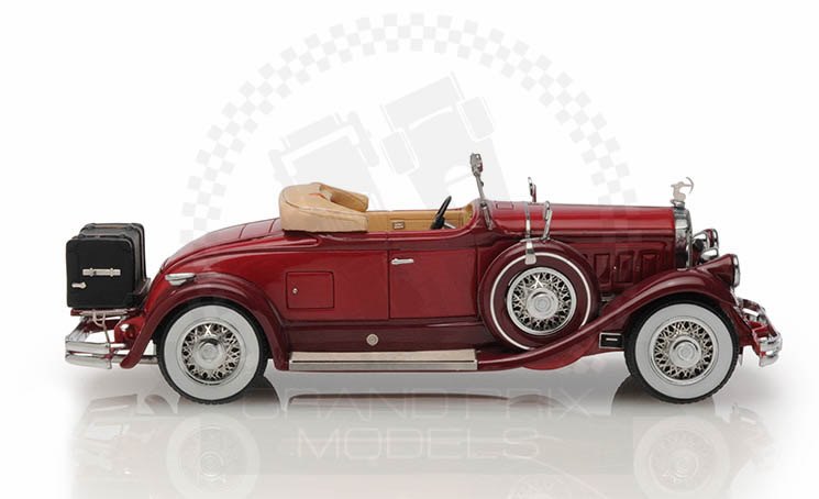 Pierce Arrow were taken over by Studebaker in 1928 and the new partnership saw the introduction of straight engines into the range and record sales for the brand in 1929, which dipped slightly in 1930 before the great depression really took a hold. The cars were designated by chassis length and engine size and here we see the 133” with the middle engine. It’s amazing the visual difference a few small details make with the red open car looking sportier with its wire wheels and painted spare tyre covers rather than artillery wheels and bags as fitted to the cream closed roof version. Both models are very well finished with carefully placed small details and make very attractive subjects.