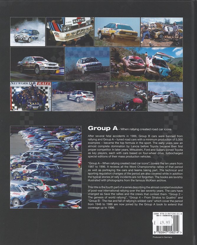 After several fatal accidents in 1986, Group B cars were banned from rallying and Group A - tuned road cars with a minimum production of 5,000 examples became the top formula in the sport. The early years saw an almost complete domination by Lancia, before Toyota became their first proper competitor. In later years, Mitsubishi, Ford and Subaru joined Toyota as key players, each with cars based on four-wheel drive, turbocharged special editions of their mass production vehicles.The new McKlein book, “Group A - When rallying created road car icons”, covers the ten years from 1987 to 1996. It gives an overview of the major events, the leading cars and crews, the factory teams, the changes of regulations - both technical and sporting - as well as results plus many stories of incidents and occurrences. The books are lavishly illustrated with photographs from the famous McKlein archive.