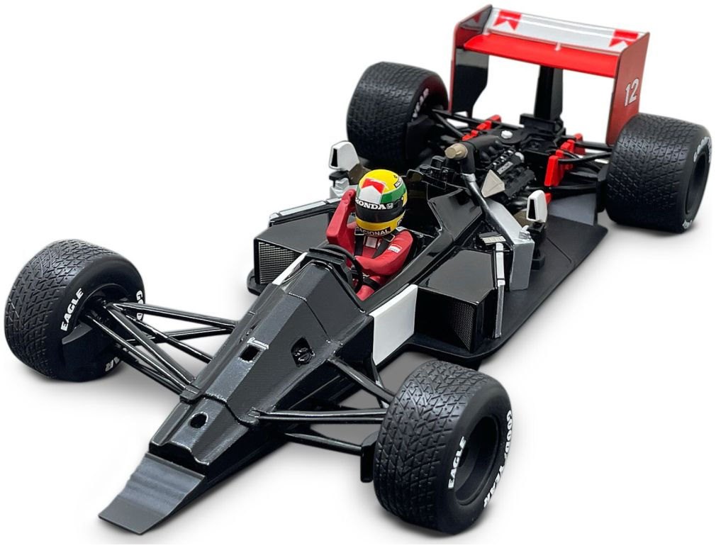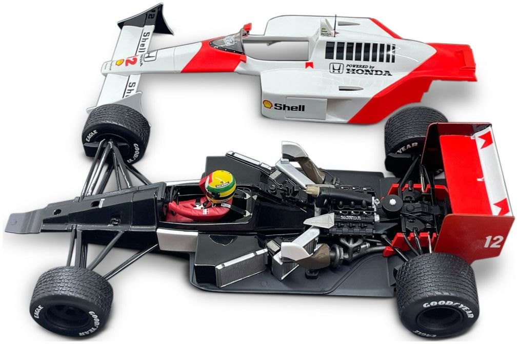 Model with lift-off bodywork to display full chassis, engine and gearbox details.