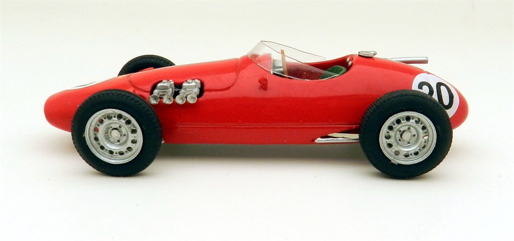 We usually think of a very dark green where Connaughts are concerned but here we see Italian red for Piero Scotti, who took part in a few non-championship races for the team. We’ve been unable to find any colour images of the car but a couple of black and white ones show that the decal placement is good, as are details such as exhaust layout. The finish is of a realistic level and the smaller parts are carefully fitted.
