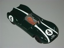 After an initial test run in the rain at Silverstone, Jack Brabham drove the new streamlined Cooper in practice for the Formula 2 race supporting the French GP at Reims, though he discovered that the car became very unstable at speed and opted to race the more conventional open wheeled car. Jade's model is beautifully finished in a very dark green and the decoration has been neatly applied. A fine miniature of a very rare machine.