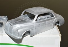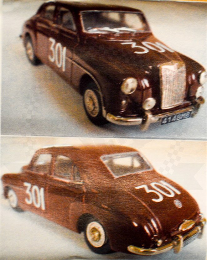 Another 1956 Mille Miglia MG but this time a four door saloon Magnette which was the company car of then Autosport Editor Gregor Grant. Apparently the BMC Competitions dept were too busy to prepare the car for him, so it was given to the factory service centre who made a few upgrades ready for Grant to tackle the event solo! Despite a number of problems including valve damage that left the car running on three cylinders and a broken driver's side windscreen wiper, he finished fourth in class! The model is, as might be expected, basically a standard MG Magnette with race numbers added and the parts are well thought out and cleanly cast.