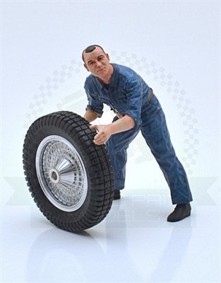 Description: Wheel Changing Mechanic 1930s Bugatti T59 Style Blue 1:18