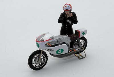 This is a fascinating subject from an historical point of view. Ossa were a small Spanish motorcycle manufacturer, best known for off road machinery, and Santiago Herrero was an amateur racer who ran privately owned Derbiis and Bulcaltos from his motorcycle repair shop. Ossa designer Eduardo Giro recognised the young man’s abilities both as a rider and engineer and employed him to help develop an innovative motorcycle with full magnesium monocoque chassis. The Ossa engine gave away massive power when compared with the Japanese 250 opposition but the frame was some 20kgs lighter and on a small bike, that’s significant. Herrero won several races in 1969 and went into the last round leading the championship but fell, eventually finishing third in the standings. The kit parts are based around five resin castings, the frame and engine are cast in unit, with a separate fairing, exhaust and a pair of tyres and the remaining parts are mostly etched. These kits aren’t the most sophisticated and are definitely for the experienced builder and with the finished model only about 3cm long, you need to be precise. The hand built is reasonably well finished and there is a figure included too in both kit and built.