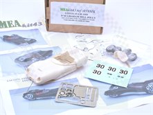 The Lotus 15 was a derivative of the 11 and typically ran with 2 or 2½ litre engines. This example had the smaller of the two units at Le Mans and was running strongly, Hall apparently dicing with Innes Ireland in a D Type Jaguar, before engine failure halted play. MEA’s model captures the shape of the car well and the clearly printed decals are accurately sized and well placed on the hand built. The main resin parts in the kit will need careful cleaning up but that done the finished model shows that they go together well. What has been missed are the spring fasteners which held the front and rear body sections closed so you may wish to add these (RENA031).