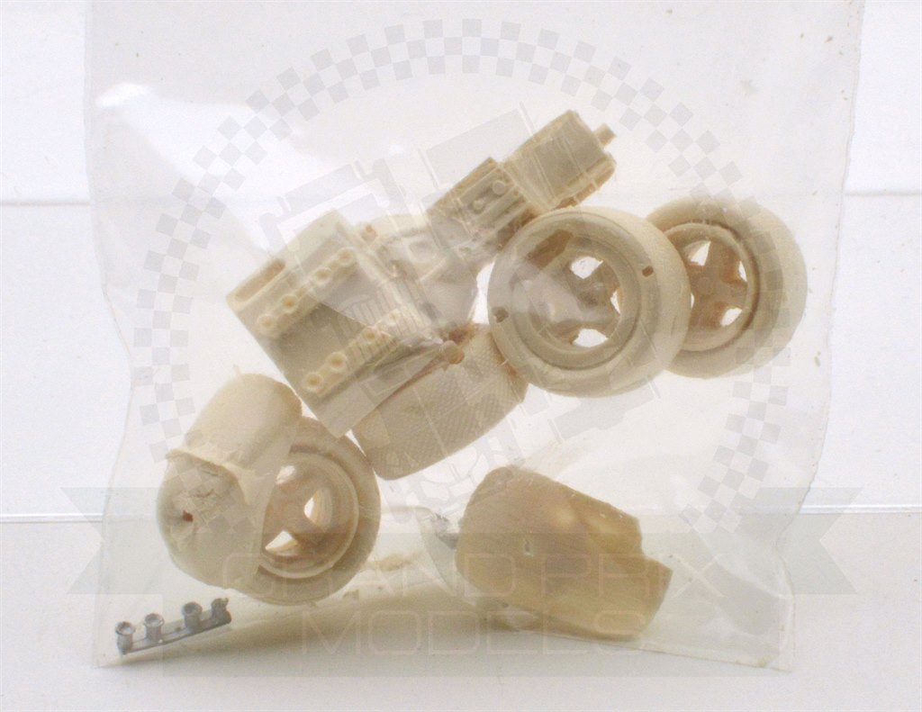 We generally think of Lola, McLaren, Chaparral and, later, Porsche when talking Can-Am but there were many small teams who took part too. Joe Huffaker built six Genie Mk10 chassis for the new Group 7 regulations in 1965 and some success was enjoyed by a couple of them. This Ford powered subject didn‘t set the timing charts alight but did finish half of the races entered. The kit parts are generally well cast, but you will need to clean the release agent off thoroughly and the panel engraving is very feint. The wheels and tyres are resin and cast as a unit, so careful painting will be needed here and there is a basic engine and transaxle. A small amount of etch adds the finest details and there are brass rods for axles and tubes for the exhaust tailpipes. The hand built model shows that the parts do all go together well and that the clearly printed decals will conform to the flowing curves of the body. The paint finish is realistic rather than a deep gloss and overall it makes for an interesting and attractive addition to any Can-Am collection.