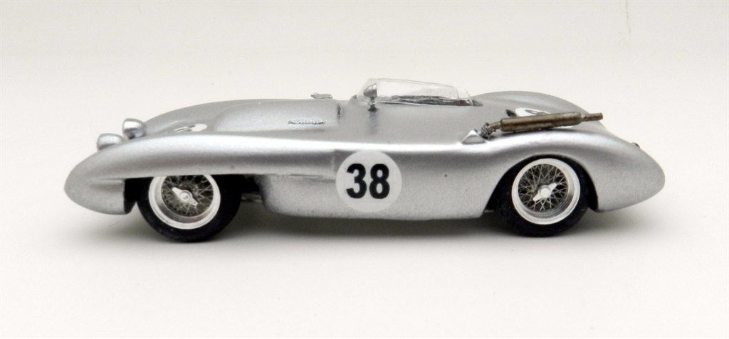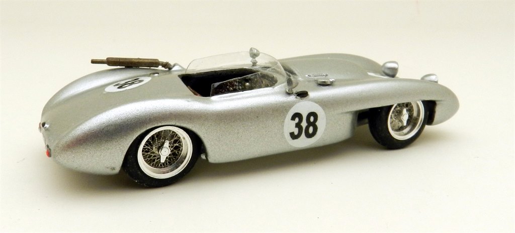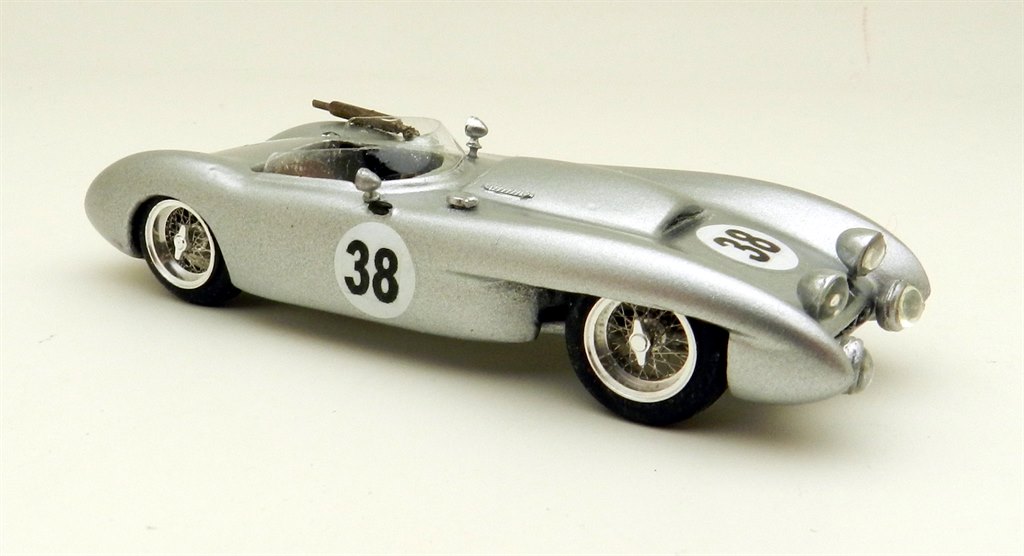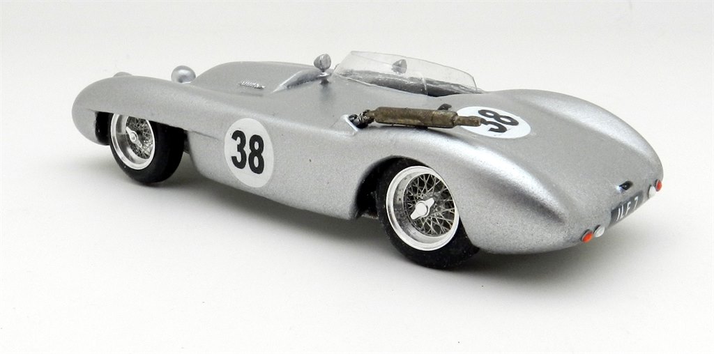 MEA lists this as a Lotus Mk X but it was in fact a smaller capacity Mk IX, unusually with Connaught power. The car was shared by John Coombs, later of course associated as a Jaguar entrant and a fellow car dealer John Young and they were going well in the 9-hour race until Coombs rolled the car, thankfully without serious injury. The bodywork is unique with the normal Lotus front end but a much lower and more rounded tail and an unusual exhaust treatment with the pipe exiting over the rear wheel. The shape of the car is pretty well replicated and the bare aluminium finish is represented with satin silver paint. One frustration is that the registration number is wrong, it should read ALF 7.