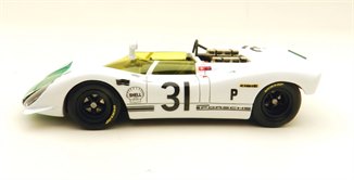 Sebring was the first outing for the new Porsche 908 spiders and while their performance in practice showed promise, reliability gremlins sidelined two of the cars during the race although the slowest car in practice ran steadily to record a respectable third place. All of Marsh’s hand built models are very well finished with plenty of fine detailing around the rear chassis and exposed areas of the engine. Race photos show the cars sometimes with Canard fins and sometimes without (or in the case of the #28, just one!) and the cars are all modelled with them as they were at the start.