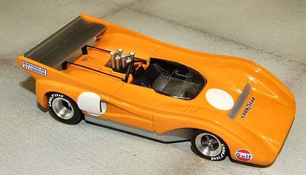 The M8F was McLaren’s first new Can-Am machine after the death of the company founder and the design was the work of Gordon Coppuck. This limited edition hand built model (25 examples only) depicts the car in initial pre-season test form and we can enjoy the purity of the shape without too many sponsor logos distracting. There are a few decals on the model and the Goodyear across the front looks a little small when compared with period images but the overall shape is pretty good and the finish is excellent.