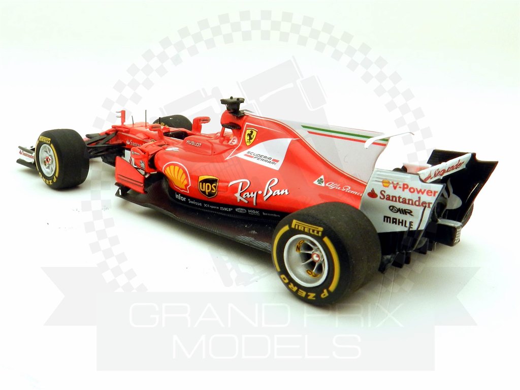 Although Australia was the first race of the season, there were already many subtle changes to the design of Ferrari’s F1 challenger from the press launch car a few weeks earlier. There are additional vents either side of the cockpit, the tiny winglets just ahead of the driver are revised and even the mirrors are slightly smaller. All these details are neatly picked up on the models and another visual change as the reduction of the amount of white on the barge-boards, a bare carbon finish on the race cars disguising them a little. The models are all very well finished with delicate pieces made for the wings and suspension, clearly printed decals and a variety of carbon textures.