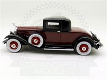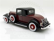 Neo released their model of the Packard Roadster Coupe a few months back and it is now joined by an equally elegant fixed head version of the car. The rich two-tone burgundy and black colour scheme suits the lines of the car very well and the fine wire wheels with brighter red paint, white-wall tyres and chrome rim edges brighten and add contrast. There’s plenty of chrome on bumpers, the radiator, numerous front lights and the rear luggage rack and a few fine etched details finish things off.