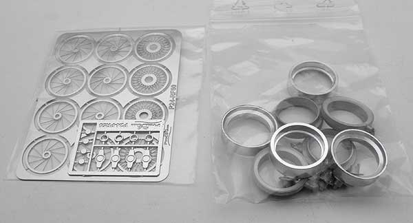 Each wheel is made up of a cast metal inner rim, machined outer rim, cast hub and three layers of etch. No instructions are included, so a little experience would be helpful!