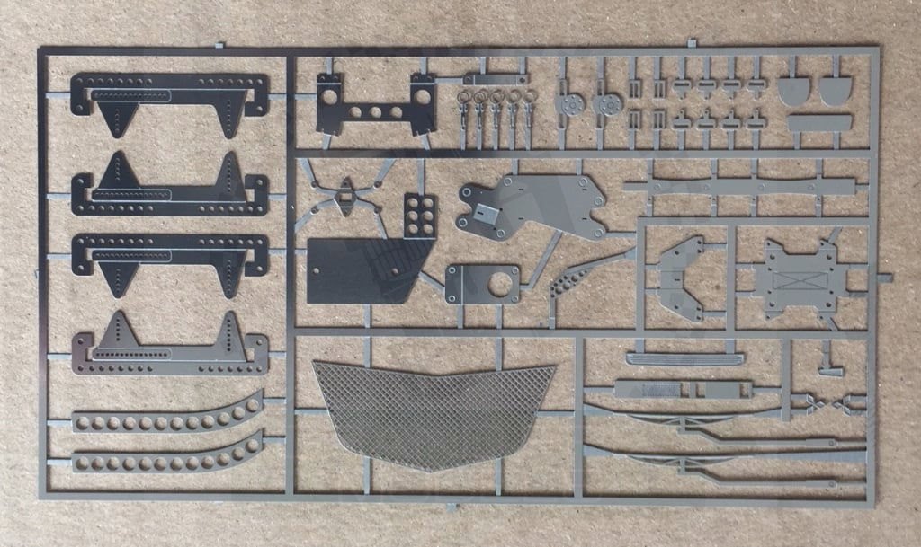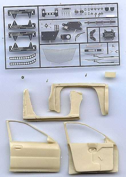 Comments: For Tamiya. Includes Resin doors, etched Grilles, Seat runners, Wipers, Belt buckles, vents, lever frames, mirrors, etc