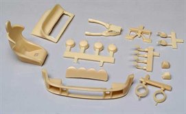 There are a number of alternative liveries for 911SCs available in 1:24 but if you are using Tamiya’s excellent 934 as a base some modification will be needed. This handy set of resin parts includes a new front air dam, engine cover with ducktail spoiler, rear over-riders, revised exhausts, new mirrors, headlamp rims and, for those building rally cars, a light pod and co-driver’s seat.