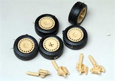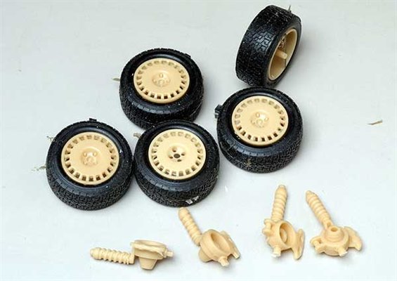 Toyota Celica GT-Four Gravel SetMade to fit Aoshima kit AOS08119Aoshima’s kit of Kankunnen’s 1989 Celica WRC car is pretty good already but Renaissance spotted scope for improvement. This set contains replacement resin wheels and shock absorbers and new vinyl tyres with a deeper sidewall and realistic tread for gravel events.