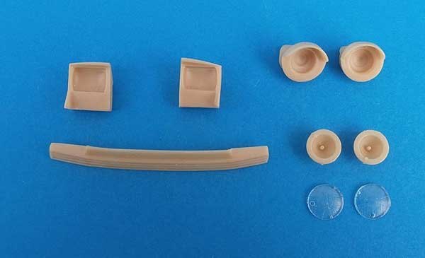 For dusk or poor weather running where a full light pod isn’t needed, this simple resin set offers raised headlights and a pair of auxiliary spot lamps for the front bumper. With the various liveries and all of these accessory parts offered, you should be able to have a very mixed selection of Celica models using the same base kits.