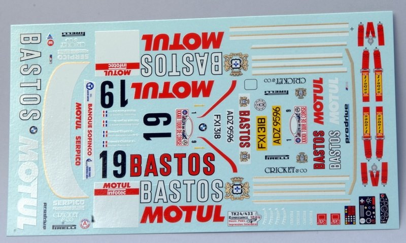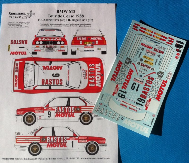| Description: | BMW M3 (E30) Tour De Corse 1988 Bastos Decal 1:24 |