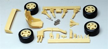 The release of Beemax’s excellent M3 kit leaves a huge number of variants that can be made. As a donor kit, it is a circuit racer and so here we see a fine selection of resin parts to convert for tarmac rally spec. For the bodywork, there are new mirrors, a rear spoiler and we are also provided with new shock absorbers to change the ride height of the model and a side-exit exhaust. Inside there’s a passenger seat, additional fire extinguisher bottles, trip-master for the co-driver and a few other small details. The base set doesn’t include wheels but there is the option of Speedline-style five spokes with slick tyres.