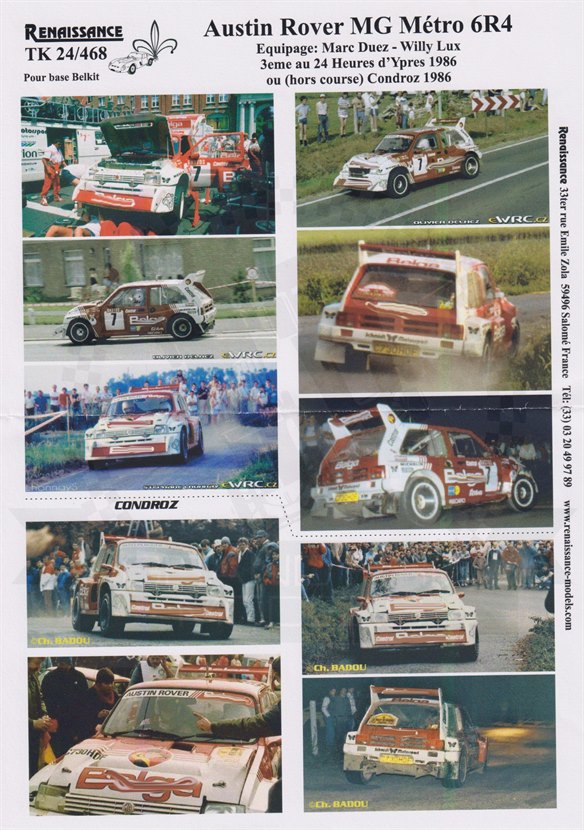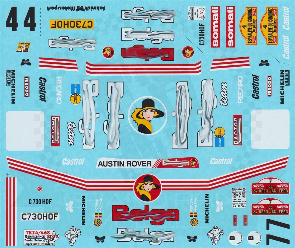 MG Metro 6R4 3rd Ypres/Condroz 1986 #4/7 Duez/Lux Decal 1:24 by Renaissance