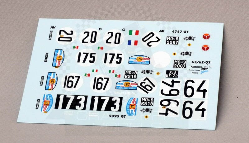Usually Renaissance’s GTO kits concentrate on one chassis number but here we have two, both cars delivered to Mario Abate’s Scuderia SSS Republica di Venezia in 1963. There are a total of five options, chassis 4575GT is offered as red at Le Mans and on the Tour de France in 1963, both ending in retirement. Chassis 5095GT finished second on the TdF in 1963, retired in 1964 and in 1966, by now owned by the ACO, was driven by de Cortanze on the Le Mans test days. All options are basic red paint schemes and should be simple builds from well cast parts.